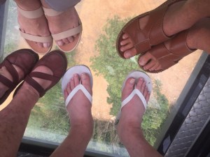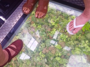 Yikes! Do we have to go in a glass bottomed gondola?!So not only did I have to cope with being suspended by a cable at some vast height but also experienced the terrifying and vertiginous feeling of looking past my feet – down, down, down, – argggggh!