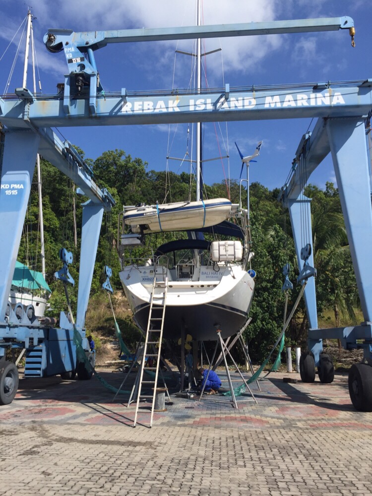 Bali Hai had been on the hard at Rebak Marina during our trip around northern India, and while we were away her anti foul was replenished by Noel Bradley’s team at Rebak Marina.