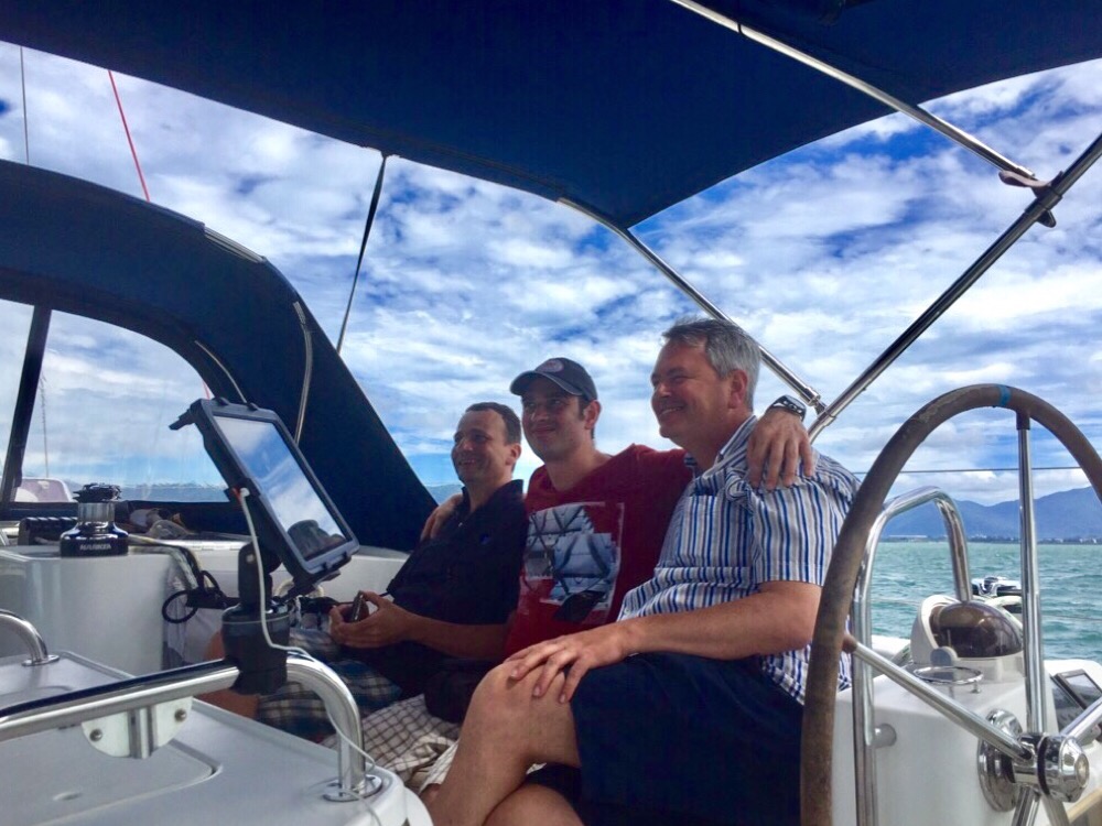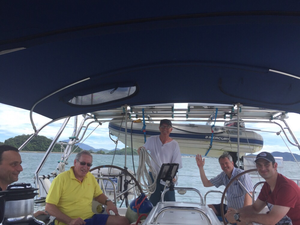 Our first boat guest of the yearAfter a couple of nights at Rebak Marina to allow the Capt’n’s brother to get over jet lag and adjust to the warm weather, we set off for Telaga Harbour. For this short hop we had three extra hands aboard- three very interesting, charming and likeable guys from Germany that we had initially met in the doctor’s surgery and then again later in the Rebak Island resort.