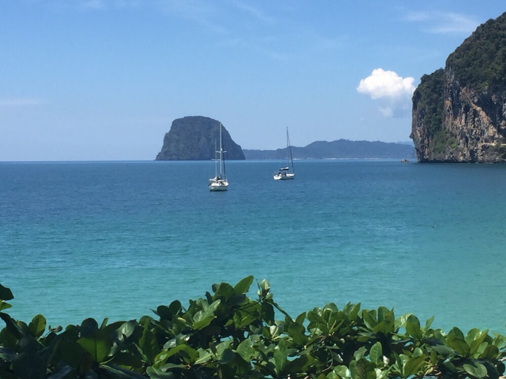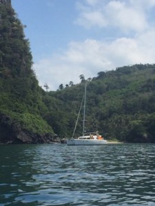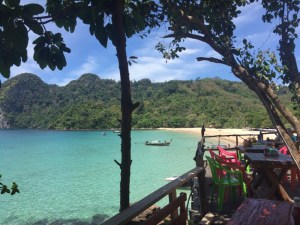 This is where we had dinner, they also served delicious mango juice and did our laundry.We initially anchored in the southern anchorage of Koh Muk but there was such a horrible roll that we decided to motor round to the East of the island where it was much more comfortable although the dinghy ride into the island was a little longer.