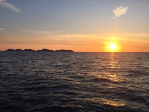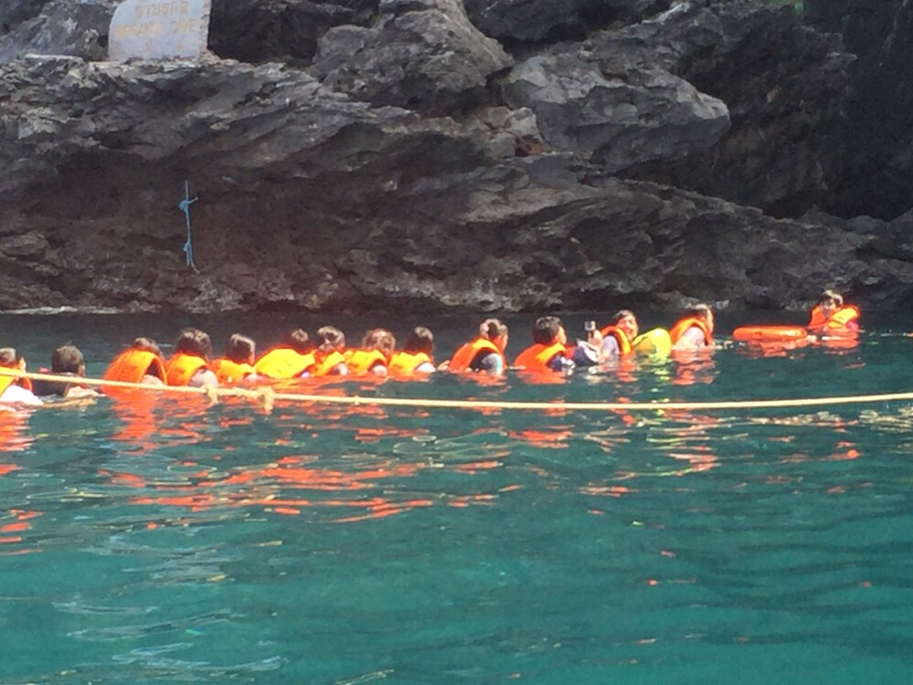 Another sunset! Always continue to amaze.The next morning we headed round the island to the Emerald Cave – a the only way to enter this cave is to swim through a dark cave for about 80 metres until you reach a beautiful hong. The Emerald Cave is so named because when the sun shines on the water, it reflects colored light all over the cave wall.