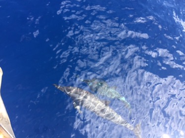 We had three visits from a group of around eight dolphins who came came and played in our bow wave and around the boat. As always it gave us such a feeling of pleasure to see them.