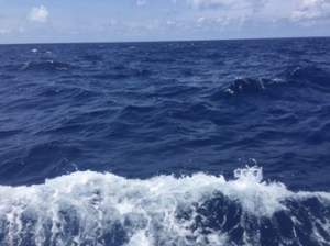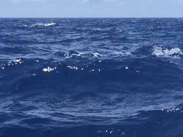 Disturbed water – hard to capture in a photo but a strange phenomenonLooking at the charts we saw that we were travelling over a sea mountain. We surmised this was the cause of the disturbance as the water depth went from 2,000 to just 100 metres.