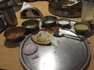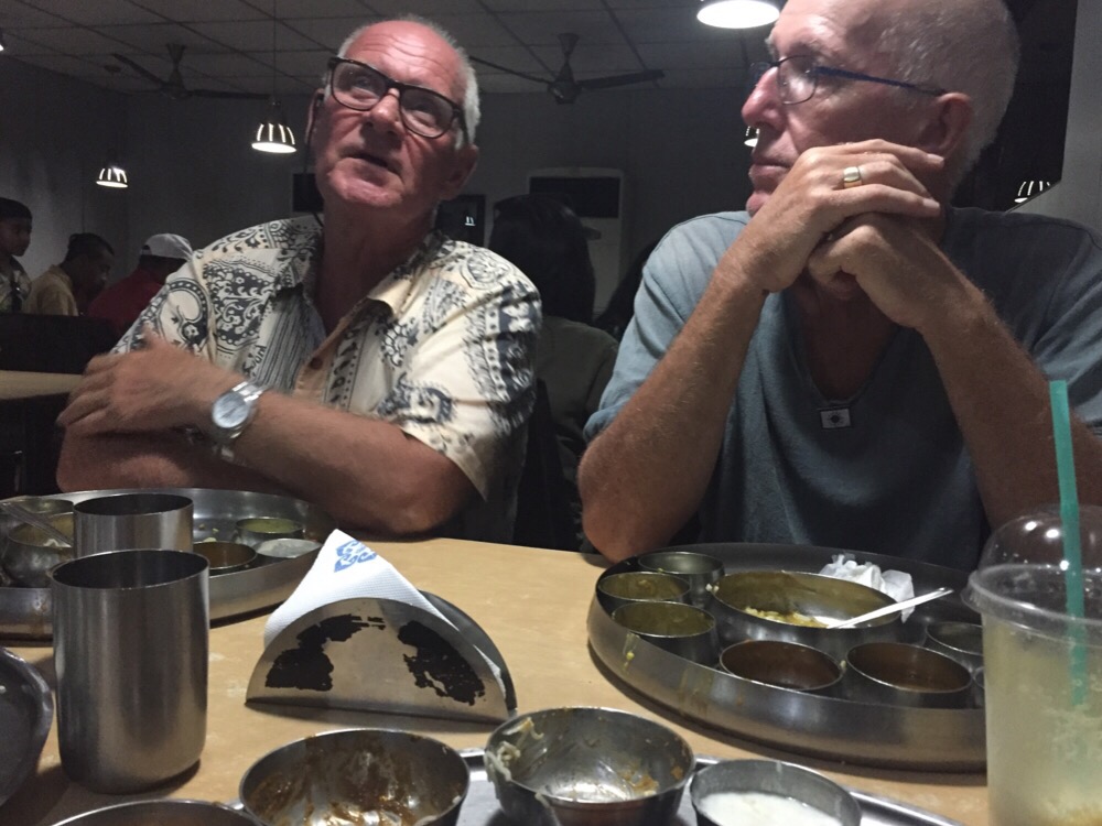 Our driver VijayRathnam recommended a great little vegetarian restaurant called Annapurna. We ordered thali – a complete lunch served on a stainless steel plate with small bowls of different curries- one a dhal, a couple of different vegetable curries, bread, rice, curd and mine even had a sort of lemon curd dessert.