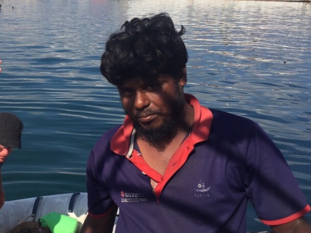 Our boat attendantAfter helping us climb out into the jetty steps he sent our dinghies out from the jetty on a pulley line. When we came back he clambered over a couple of boats and other dinghies and retrieved our tender, remembering which one belonged to which people! Well worth the 200 rupees (just under Aus$4) a day that he charges, especially when you realise that there would be many days even at the height of the season, when there are no yachts in the Harbour and he would have no customers .