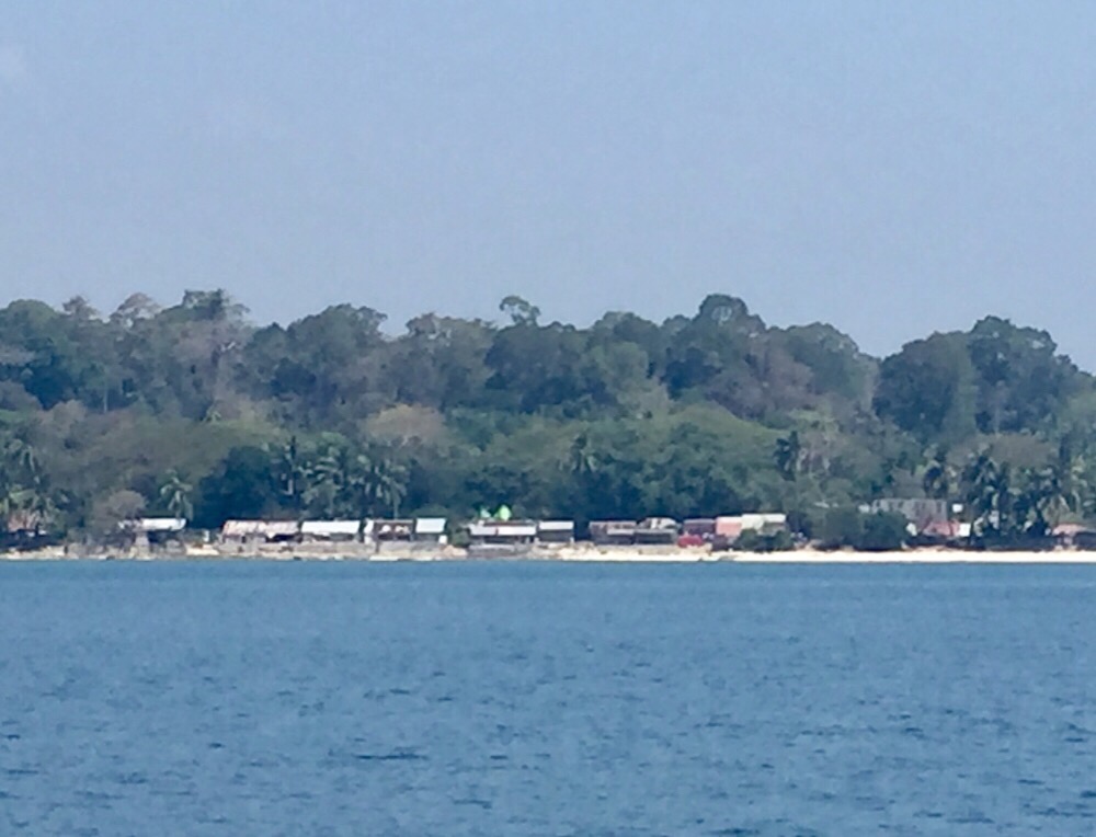 Long Island jettyThere were a few fishing boats on shore but other than two young lads who didn’t respond to our friendly waves, there were no people. We found a concrete road and walked along finding notices warning against crocodiles and not entering the forest without written permission – penalty up to six months in prison or up to 500 rupees fine (About Aus $10 or £6)!