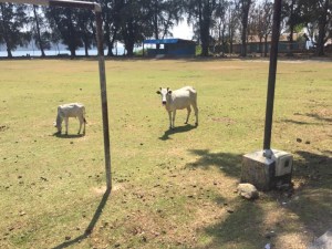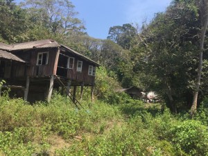 Yikes! Nerve wracking getting into the dinghy!We reached a modern looking medical centre with notices about Leprosy and Polio vaccinations. After walking past a number of houses, a very new looking (but empty resort) and a couple of official buildings we did at last come upon two very small children playing who were incredibly shy.
