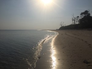 Like ducks in a row st North Button IslandAt one end there was a perfect spit of white sand and it was here that some of us decided to have sundowners. A big mistake for me as we were attacked by an army of ravenous sandflies. Unfortunately I am really allergic to their bites and came up in nasty itchy and painful welts. After a bad night being woken by the angry, irritating red lumps I took an antihistamine tablet and thankfully the aggravating itching settled down.