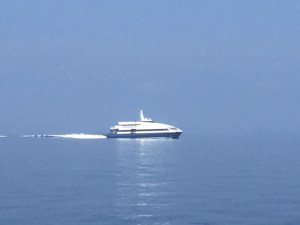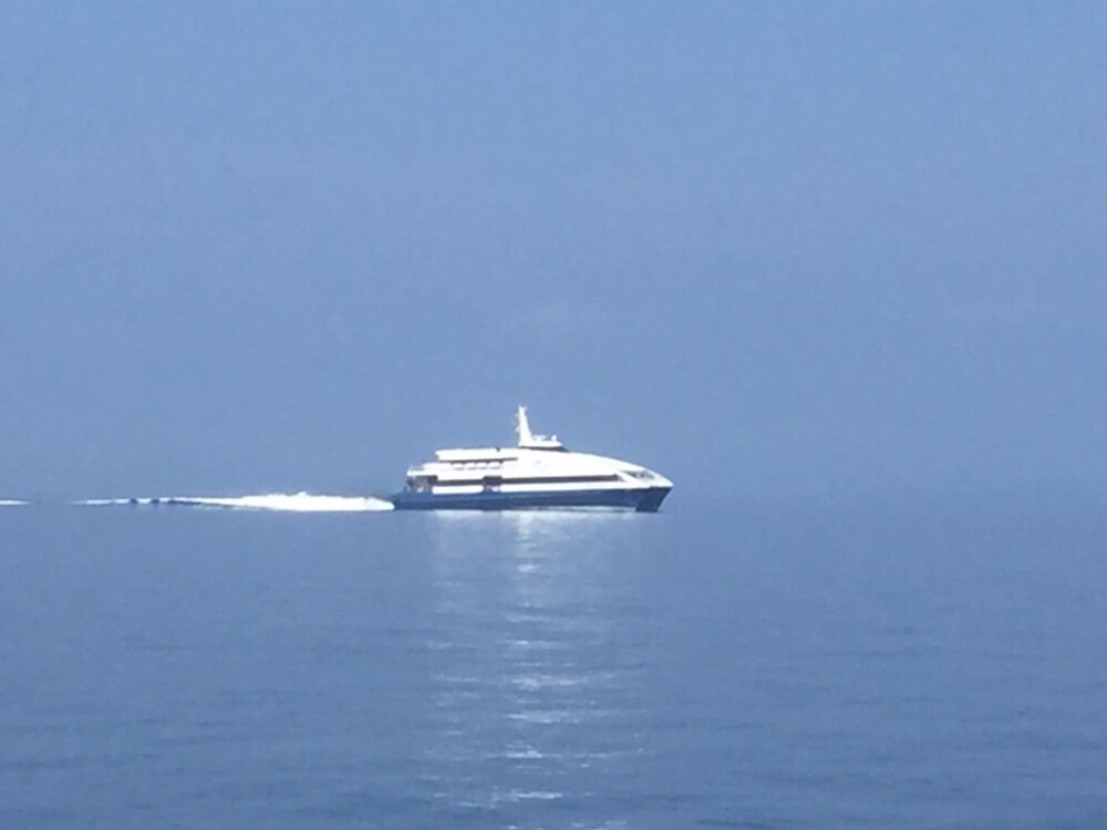 Meeting the ferry on the way to Port Blair. Such calm blue sea!After an uneventful trip to Port Blair we spent the afternoon restocking our fruit and vegetables and other provisions and submitting our new itinerary to our agent Rathnam, for approval by the Harbourmaster and then to be sent onwards to the Port Blair coastguard.