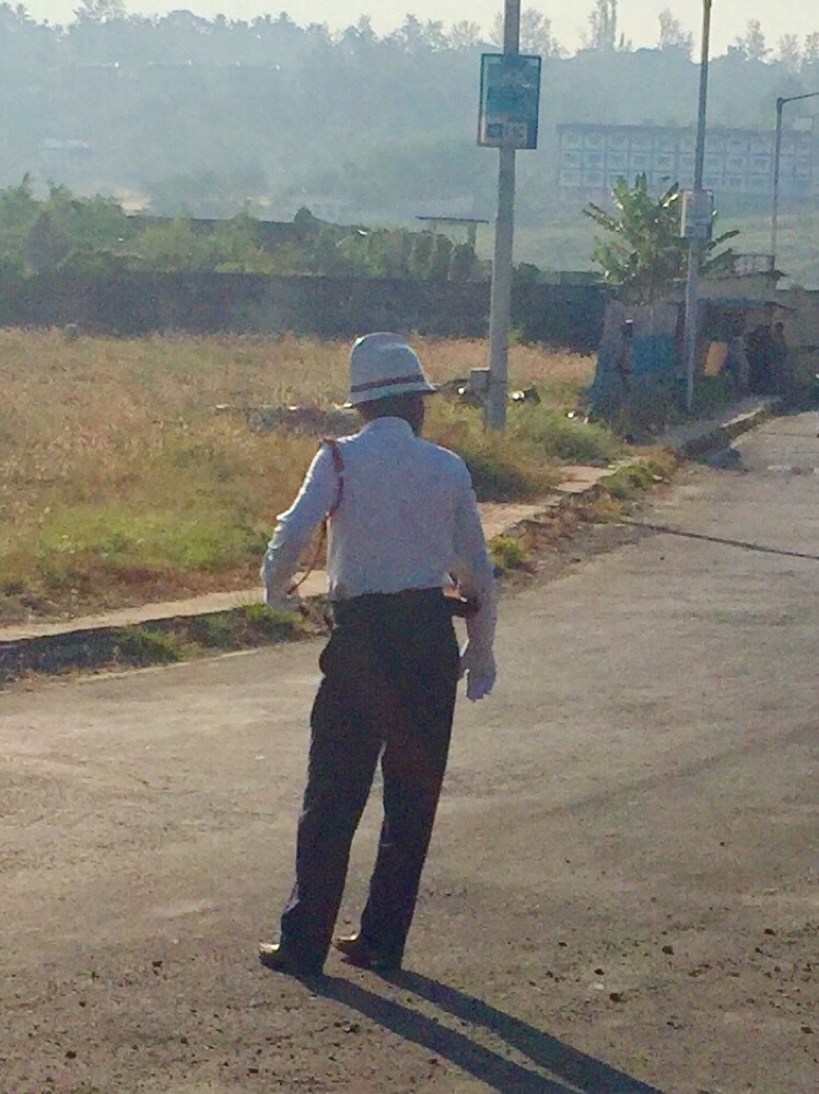 One very smartly dressed policeman!Thinking nothing of it, we carried on walking to the airport entrance gate and noticed another policeman in the middle of the road dressed in the same way but this time there was another official looking person with him.