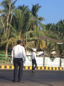 Just then he stopped the sparse traffic and a cavalcade of seven cars zoomed passed us. Once the cars had disappeared in a cloud of dust the policeman strolled away from his post and several khaki clad, gun bearing officers slipped out of the shadows and also leisurely walked away. We later learned that the big display was for the Governor of the Andaman Islands. Our daughter and the Governor – two VIPs in one Day!