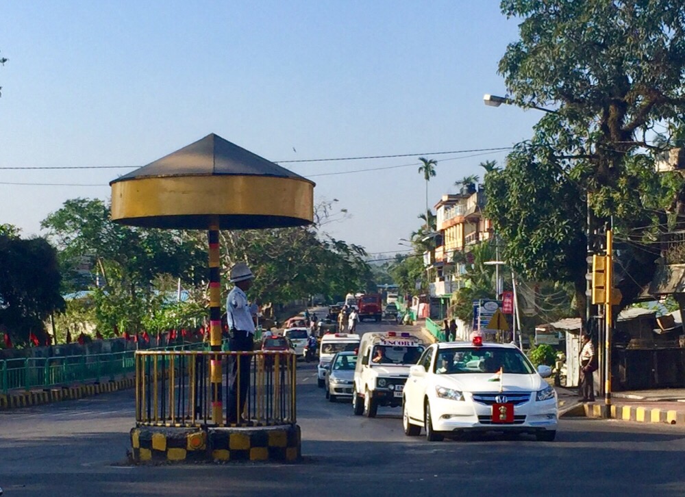 Port Blair airportAs we wandered out of the airport precincts we had a quick chat with a policeman who was standing in the middle of the road, on point duty (despite the very small trickle of traffic). He wore a smart khaki uniform, white gloves and a large white helmet on his head, similar in shape to the familiar traditional helmet worn by English policemen.