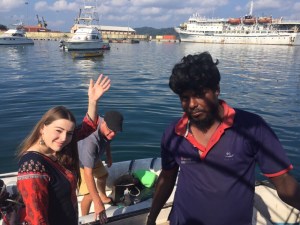 Preparing to board the dinghy with our boat caretaker helping her inAfter an exhausting term of being a class teacher for the first time, coupled with a gruelling night flight, our daughter fell into a deep slumber pretty well as soon as we exited Port Blair.