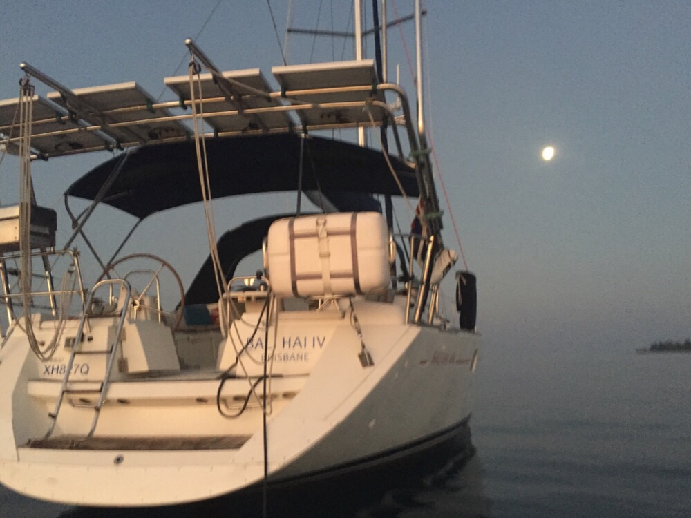 We sailed towards the moon and watched as fiery red turned to brilliant orange, to rolled gold and then to its more familiar silvery yellow, by which time we had reached our anchorage at Neill Island.