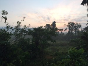 Breakfast!As the day fully dawned we were off – 78 cars and 23 buses and trucks set off, rumbling through the silent and majestic forest. Soon, as the convoy spread out, and we couldn’t see the car in front any longer, we had forgotten we were travelling with hundreds of other people. The air was cool and sweet and high up in the trees unknown and unseen birds warbled and called as we bumped along, avoiding the worst of the potholes where possible.