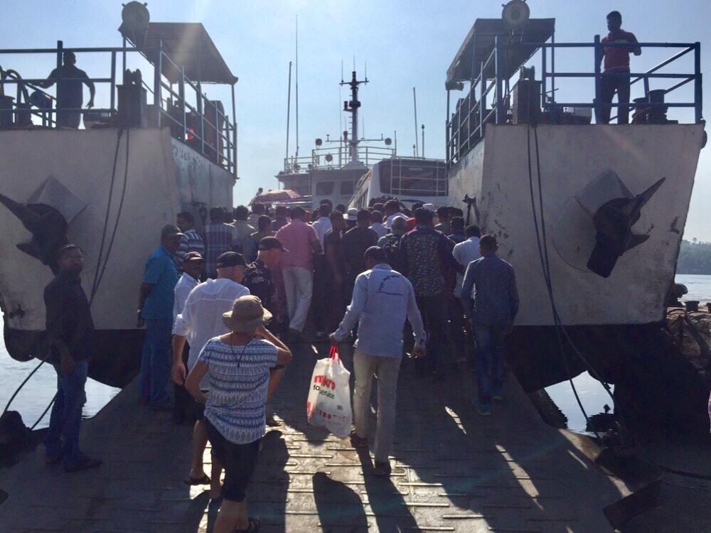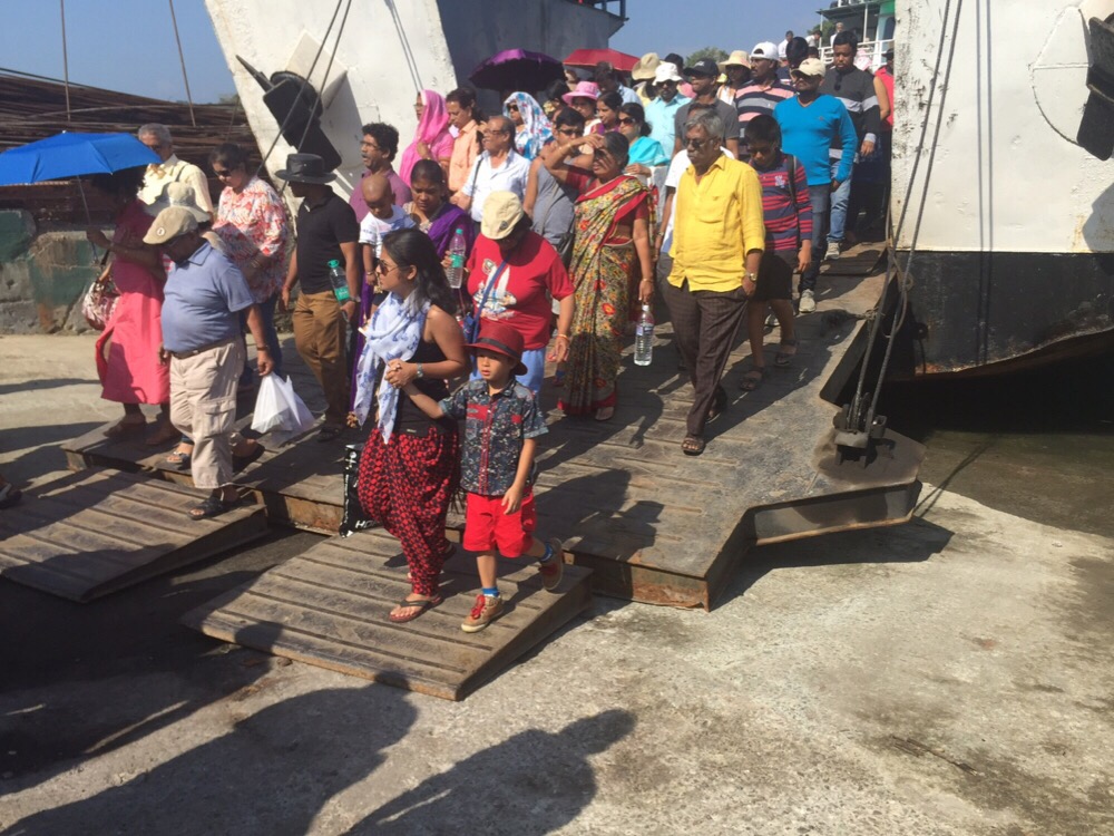 Boarding the very crowded ferryAs we joined the press of people and entered the loaded boat which was filled with chattering hoards it occurred to me that we could be walking into one of those headlines you read from the comfort of your armchair on a Sunday morning: “Overloaded ferry in remote Indian territory capsizes, 325 people lost, four Australian tourists missing,”.