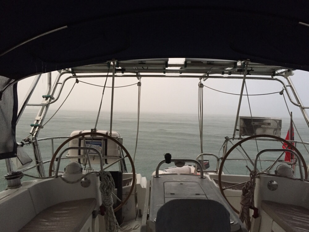 The worst was over and we could see again!The rain was so hard that there was a complete white out and all we could do was go round in a small circle. Our instruments told us we wouldn’t hit land but we were concerned about hitting another yacht or a fishing boat.