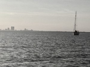 Motoring past Malacca with YantaraIt was rough going out of Admiral Marina, Port Dickson – with 20 knots of wind “on the nose” and a big swell. Fortunately the swell was coming across the side of the boat so although it was uncomfortable we weren’t slamming down off waves.