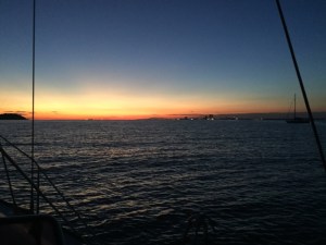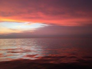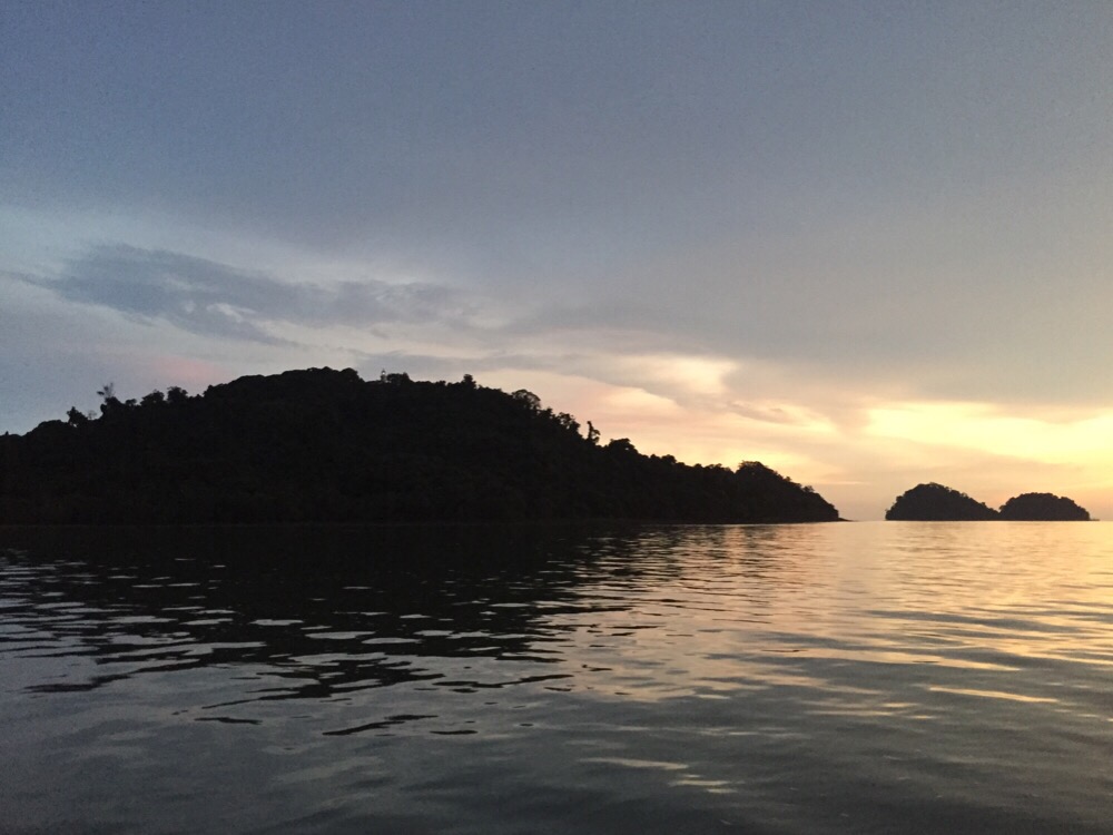 Sun sets on Pulau BesarWe spent a very comfortable night there and rose early to sail to Pulau Pisang.
