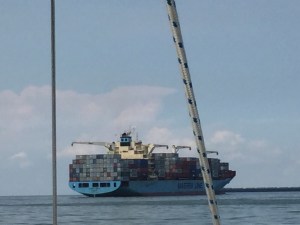 They had to withstand torrential rain and nerve wracking claps of thunder cracking at the same time as forked lightening while trying to negotiate their way through the sizable fleets of massive (thankfully mostly anchored) container ships appearing out of the gloom.