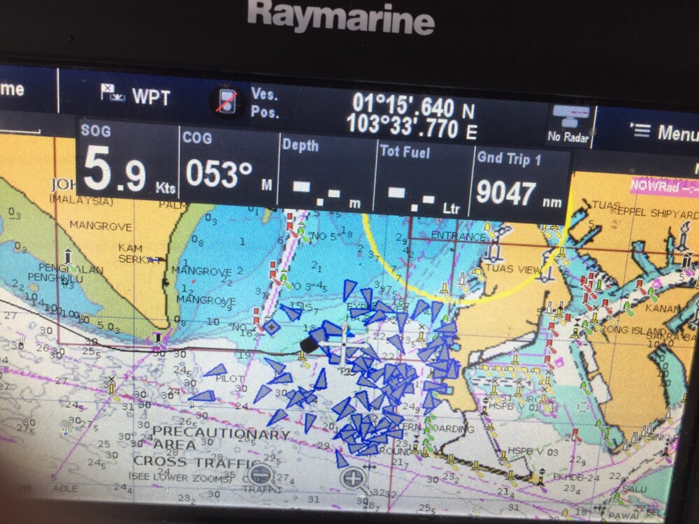 Our first sight of Indonesia of to starboardAccording to Google during 2008 130,000 ships used the Singapore Strait. Nine years on and It’s probably quite a few more. Suffice to say we had to keep our eyes peeled constantly and watch the AIS on our chart plotter like hawks to make sure we didn’t get in the way of any of the huge metal monsters.