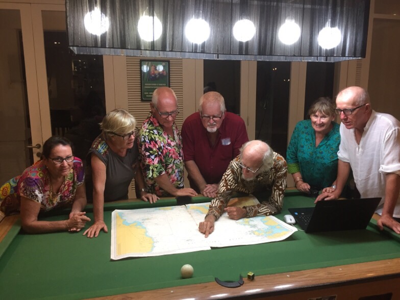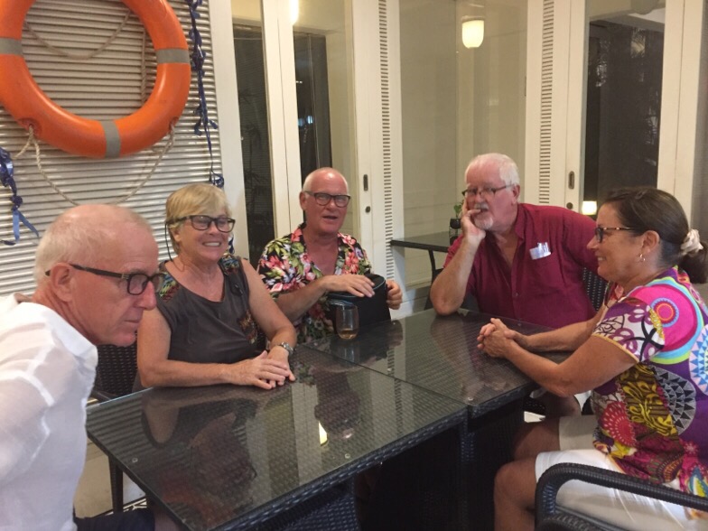 The crews of Bali Hai, Charon and Yantara catching upAs we tied up, the skies opened and we all made a dash for cover. One of the marina staff took our papers for check in which was amazing – no getting ourselves to customs and immigration, we just sat on the boat enjoying a GOA (gin on arrival)!