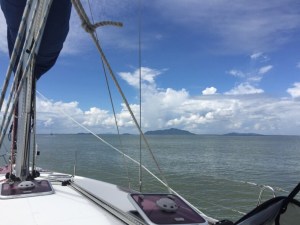 The deck light was a great help in pulling up the anchor in the pitch dark and soon we were on our way – gliding past Islands all around with not one light showing.