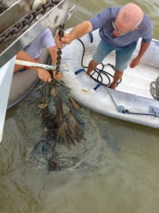 On that occasion the skipper, with help from the crew from Yantara, had spent considerable time cutting the ugly tangle away and Capt’n Birdseye had ended up with a very nasty infection from something sharp in the mess that had cut his finger.