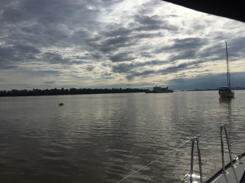 Along with Yantara, Shakti and Liberte, we pulled our anchor up in at around 7.30am and were relieved to find none of the mass of fishing net, fisherman’s twine, plastic bags and old sacks that had come up with the anchor when we had previously re anchored in the Sambas River.