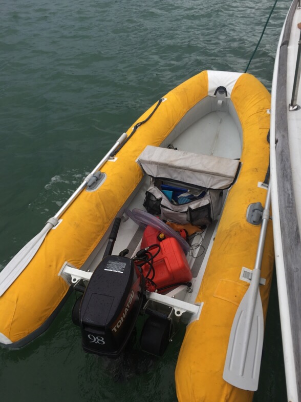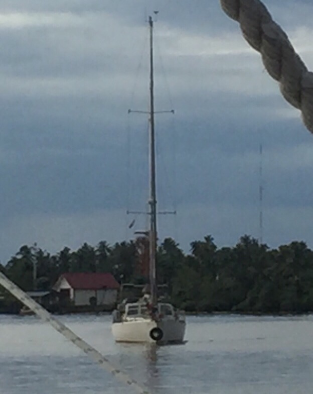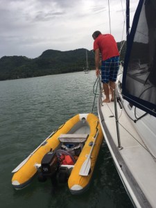 They loaded up a dinghy and came out to us as we neared the anchorage and made a dramatic entrance into Bali Hai mid tow.