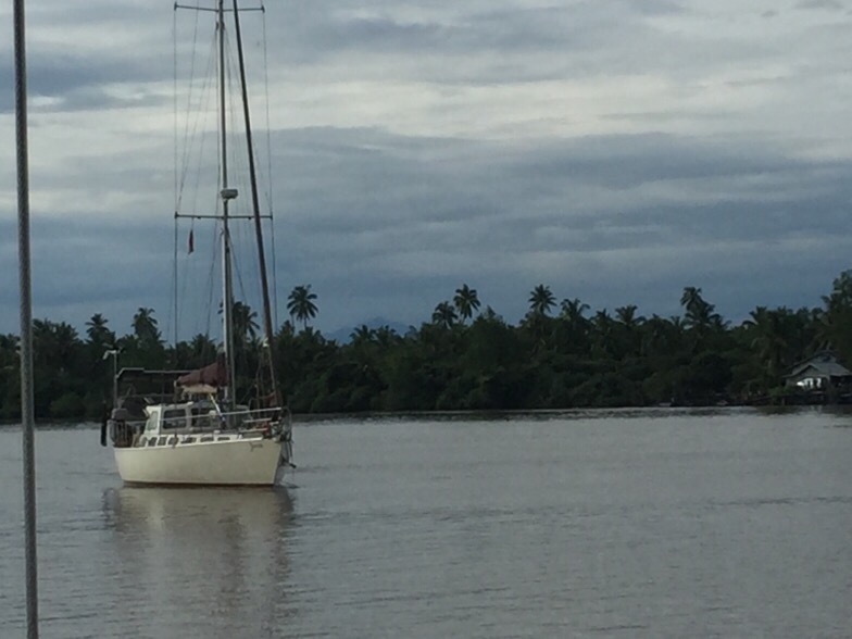 We motor sailed to the proposed anchorage in Bengkayang where S/V Matilda was already anchored and found it to be a long way out and with quite an unpleasant swell. We tried another spot further along the coast that looked a little more sheltered but that was still not comfortable.