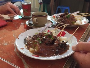 After an early start (we were in the bus by 7am!) we drove from our anchorage at Tangung Bajau, into the centre of Singkawan. We stopped for breakfast in a small and bustling cafe where the coffee was strong and the food spicy (rice and chicken satay!). Our daughter, being vegan was taken in a tri-shaw to buy beautiful fresh fruit at the local market.