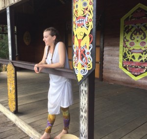 We were presented with Dayak bracelets – all different, mine was a plaited band made from some kind of plant material. The welcoming party then offered us rice wine which tasted earthy and was poured from a piece of bamboo and drunk from bamboo cups. It had quite a kick!