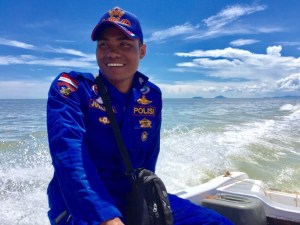 Our lovely guide Iwan had come all the way back from Pulau Lemukutan in the tiny police launch with the two marine policeman to met our daughter and me.