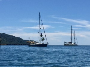 I was feeling helpless and anxious being stuck on the island and wished I could be teleported back to Bali Hai to help out. Fortunately that phone call worked and after the skipper coughed up the fee they let the towline free so he could anchor.