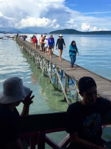 We made our way up the long and rather rickety pier, marveling at the clarity of the water and the stunning palm fringed beaches. The we joined the other rally participants who had just finished eating lunch.
