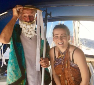 Captain Birdseye and I were crossing the Equator for the second time in Bali Hai but for our daughter it was her first crossing in a boat so in accordance with longstanding marine tradition she had to undergo an initiation ceremony, conducted by King Neptune.
