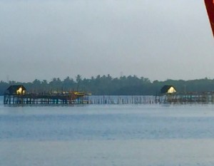 And to the Starboard sideThe second thing to was that there were an amazing number of fishing huts rising out of the ocean like so many stick insects. Because there were so many we decided to anchor quite a way off shore.
