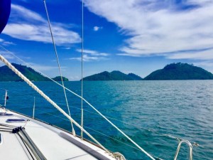 The first thing that struck us as we headed towards the anchorage at Pulau Genting was what a sheltered anchorage it was. Surrounded by neighboring islands – all with substantial height – meant that yachts anchored there would be safe and comfortable whichever direction the wind was (except a northerly).