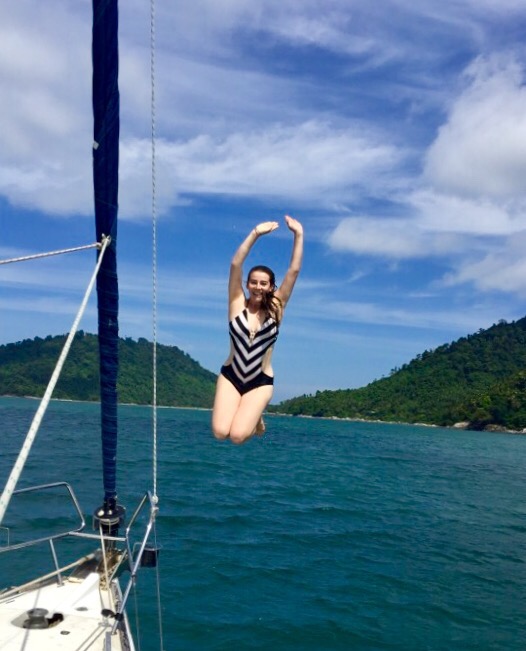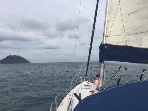 S/V Yantara getting her main upWe headed out of the anchorage and while still in the sheltered waters hoisted the main sail but much to our dismay the wind was heading straight out of Ketapang at twenty knots plus. It was miserable! We were making less than four knots per hour even with the engine on and falling off massive waves which made the whole boat shudder and judder.