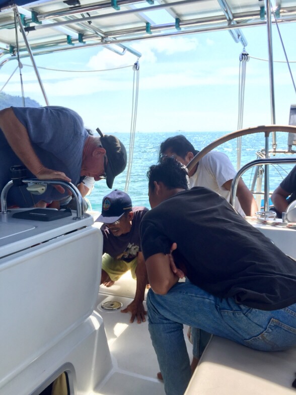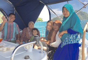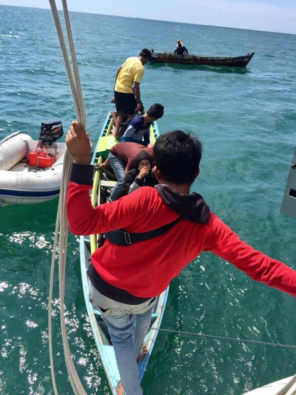 We reanchored close to where we had been before and hadn’t been there too long before the first group of visitors arrived. In the space of an hour a half we played host to three groups of different ages and genders. All of them speaking no or very little English. Our Indonesian is also very limited but its amazing how despite that we had some great conversations.