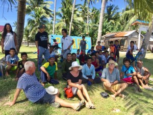 Drifting back in the current to the stern of the boatThe following day was Sunday so we decided to take the dinghies over to the nearest settlement up from the beach. And what a welcome we received. There were lots of people just enjoying their day off and as soon as we arrived we were welcomed warmly and of course, many photos were taken.