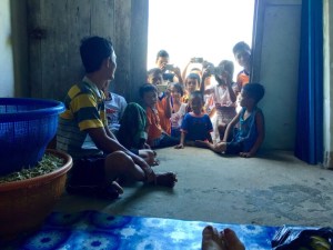Everyone enjoying a relaxing Sunday morningWe met one of the school teachers and a government administrator who were both there on rotation, and who could speak good English. We asked if there was anywhere we could buy a few fruit and vegetables but they didn’t think there were any for sale anywhere.