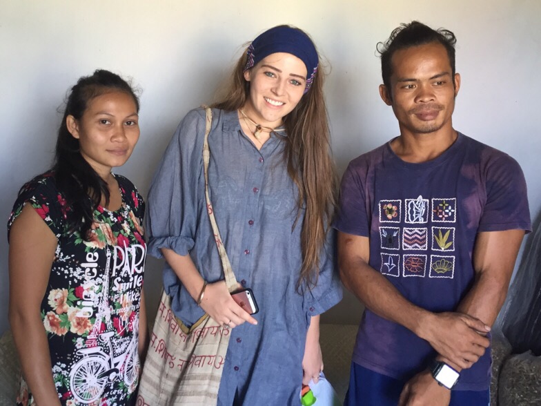 Our daughter with some of the local womenThey offered to show us round the little village and showed us the new school building (with so little in the way of materials, books etc), the administration building and medical centre and homes of different sizes and styles, some very modern and others made out of traditional materials.