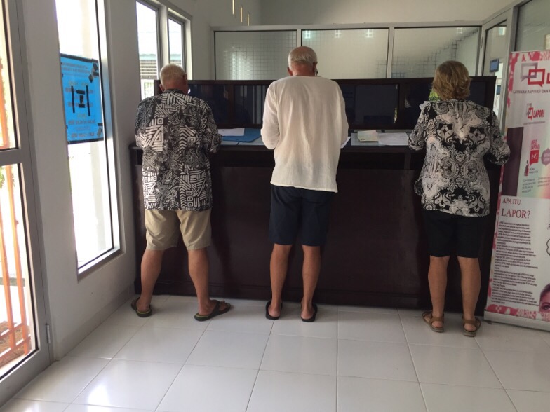 Such a wonderful view from the anchorageOur main objective was to get our cultural/social visas extended. These visas can be renewed several times to allow you to stay in Indonesia for six or seven months. We went to the Immigration office first thing and started off in an entrance lobby in the building that fronted the road where we waited for a while until eventually someone came along and directed us to a building in the back.