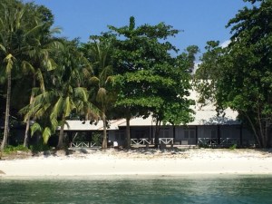 View of the house from the dinghyThe building appeared to be closed up as were the small beach bungalows nearby so we were free to enjoy the glorious surroundings completely on our own.