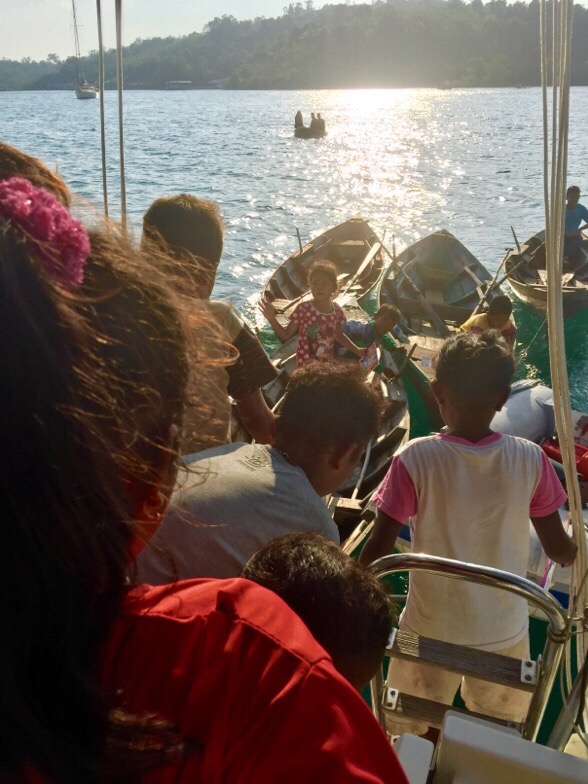 We hadn’t been back on Bal Hai very long when another group of young children rowed up on their sampan.
