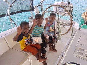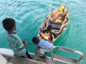I wouldn’t mind taking on this cheeky lot as cabin boys!Thereafter we had a stream of sampans coming and going eventually we had to call it a day as we were expecting “official” guests- our friend’s brother and sister-in-law who we had invited on board earlier in the day.