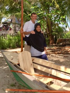Captain Thalassi’s sister-in-law and brother-in-lawThe following day we were picked up early from our yachts by a “pong pong” a motorised sampan which took us to Pulau Singkep where we were going to meet our friends and also take Yantara’s malfunctioning anchor winch to the excellent mechanic that had fixed S/V Thalassi’s recalcitrant but romance inducing engine.