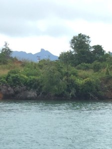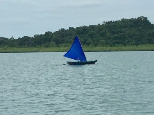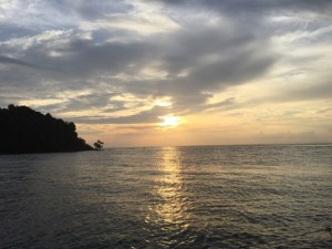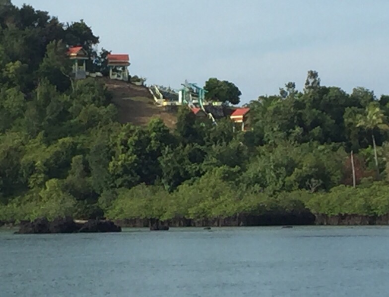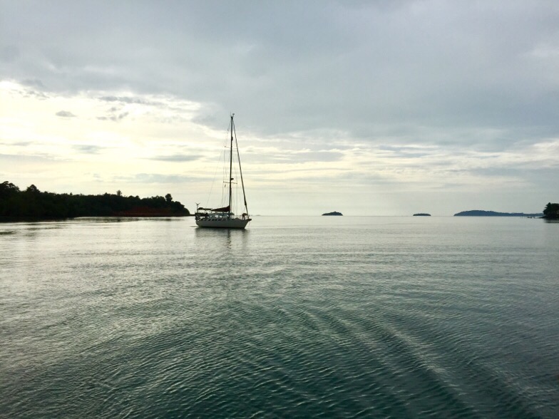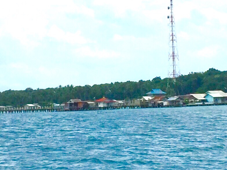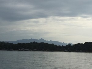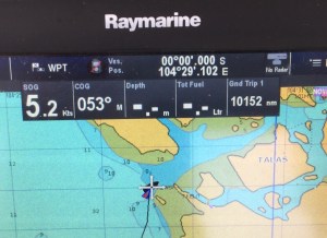 Gunung Daik with three distinct rock peaks – one giving the archipelago the name Lingga (Lingam being the Sanskrit name for phallus).We arrived at Benan Island, one of our favourite rally stops and went ashore for a walk. Unfortunately I forgot my camera so was unable to capture the lovely village, the friendly people, the white sand beaches, the palm trees swaying in the wind and the delightful group of girls who followed us on our walk, singing to us and making us rings out of palm fronds. (To see photos of Benan Island go to https://dotsailing.wordpress.com/2015/11/23/crossing-the-equator-aargh-jim-lad/)